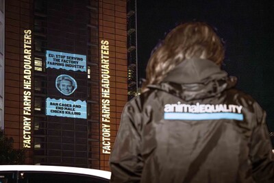 Este es el tercer año consecutivo en el que legislación vinculante sobre el bienestar de los animales de granja está ausente de la agenda de la Comisión. La proyección de ayer forma parte de una serie más amplia de protestas organizadas por Animal Equality frente a las instituciones europeas en el marco de la campaña «UE: tus retrasos, su sufrimiento». La campaña condena la inacción de la Comisión a pesar de sus claros compromisos previos de poner fin al uso de jaulas y al sacrificio sistemático de los pollitos machos.