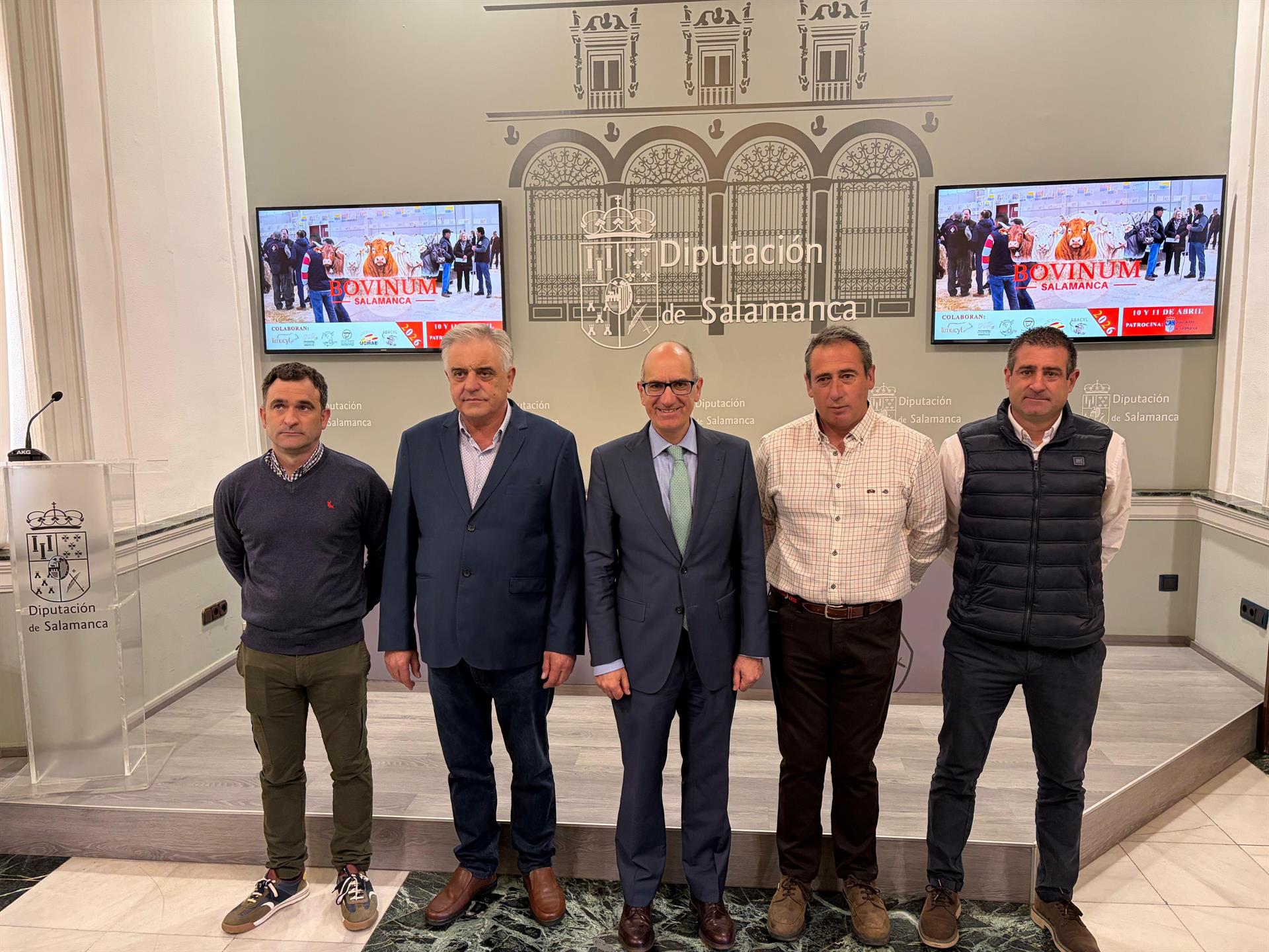 El presidente de la Diputación de Salamanca, Javier Iglesias, ha presentado este jueves, 26 de marzo, la cita en un acto al que han asistido Roberto Tabernero Martín, en representación de UCHAE; Alberto Gallego Muriel, de la Asociación Nacional de Limusín; y Alejandro García Martín, por la Asociación Nacional de Charolés.