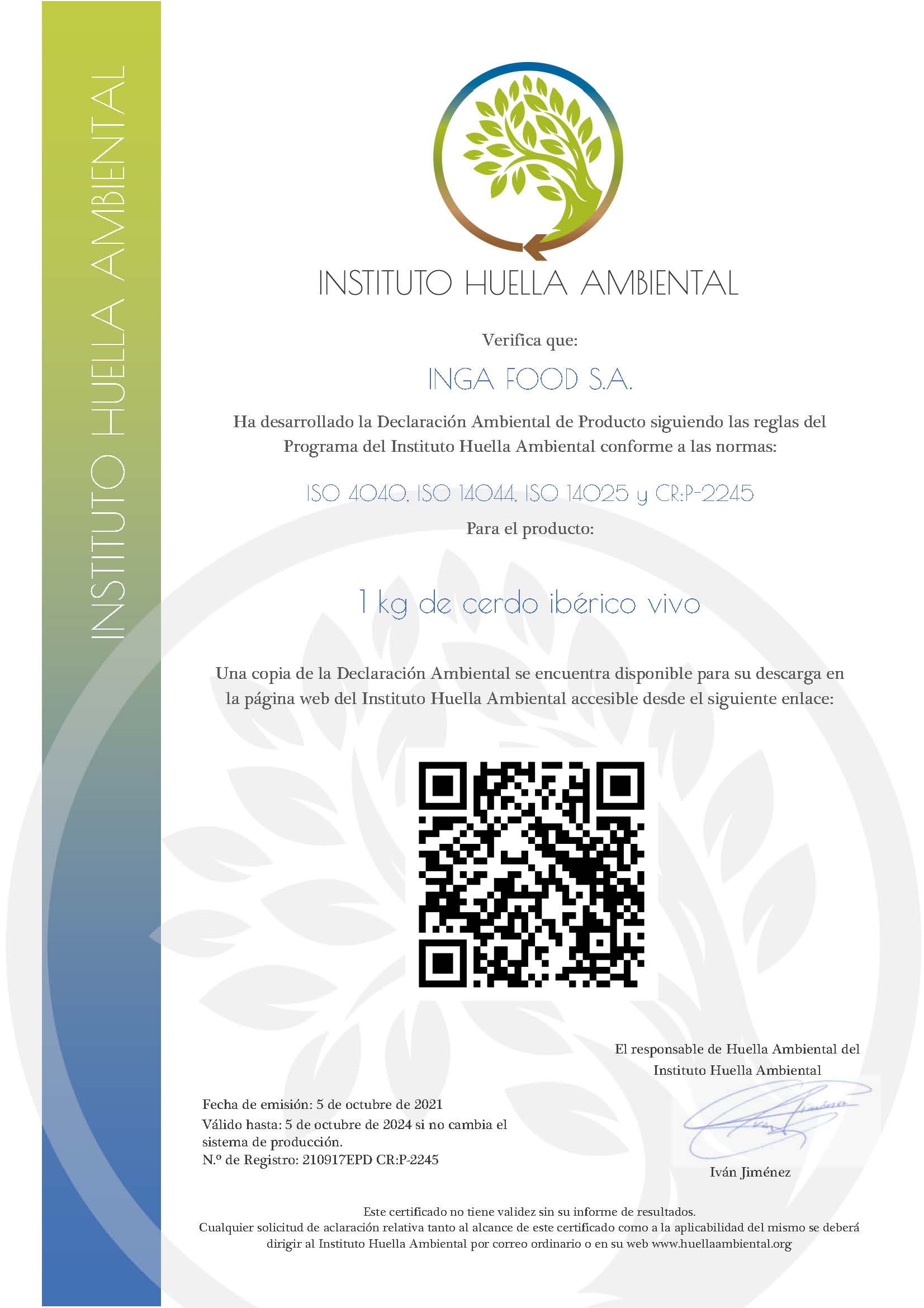 Inga food: primera empresa europea de producción porcina en certificar la declaración ambiental de producto (DAP) en carne de cerdo ibérico