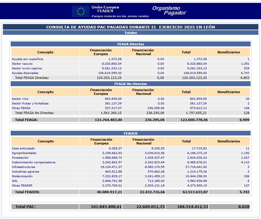 León recibió, en el ejercicio financiero de 2025, el mayor de la PAC, en ayudas directas, desde que existen estos fondos